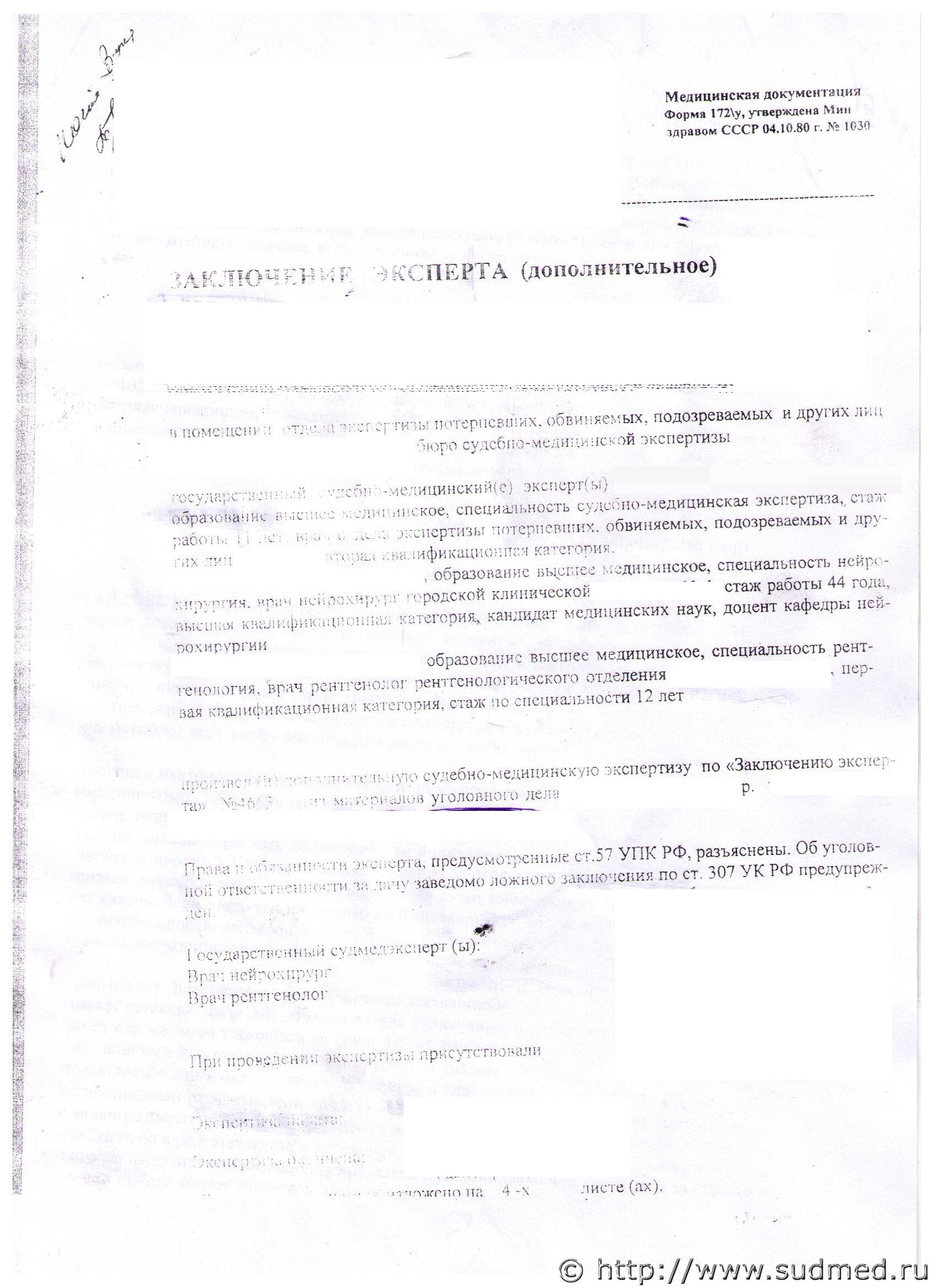 Цитата Господа,если сканировать снимки это поможет? Если на специальном сканере для рентгенограмм - оч.поможет, на "обычном" сканере - вряд ли. Оч.вероятно, результаты КТ сохранены в цифровом виде (в памяти компьютера при томографе или/и на CD-диске в архиве. Поинтересуйтесь. Оптимально - получить и представить сканы и реформации в цифровом виде, т.е. без потери качества. Исследование информации непосредственно с диска или флеш-карты позволяет применять целый ряд специальных методик анализа: масштабирование, изменение контрастности и т.д. (эта программа может быть записана на сам носитель либо она есть у рентгенолога, к которому Вы "в реале" обратитесь за консультацией). Наиболее информативно и достоверно исследовать все сканы всех КТ. Иногда, сравнительный анализ нескольких рентгенограмм или КТ дает много больше информации, чем каждый снимок в отдельности. Идеально - изучение их всех в цифровом виде, что позволяет лучше визуализировать и анализировать рентгенологическую информацию. Цитата На следующий день я иду и делаю на новейшем скт аппарате Т.е.на "вторую" экспертизу представлены не все имеющиеся материалы? Ходатайствуйте о назначении доп.экспертизы с предоставлением вновь возникших данных СКТ, подтверждающих наличие костно-травматической патологии. Посоветуйтесь с Вашим адвокатом: возможно, для обоснования ходатайства о дополнительной или повторной экспертизе целесообразно получить письменное заключение высококвалифицированного рентгенолога с результатами его исследования всех выполненных Вам лучевых исследований костей свода и основания черепа. Такое мнение можно получить, обратившись, например, в Бюро судебно-медицинской экспертизы иного субъекта Федерации или на кафедру рентгенологии любого медВУЗа. |