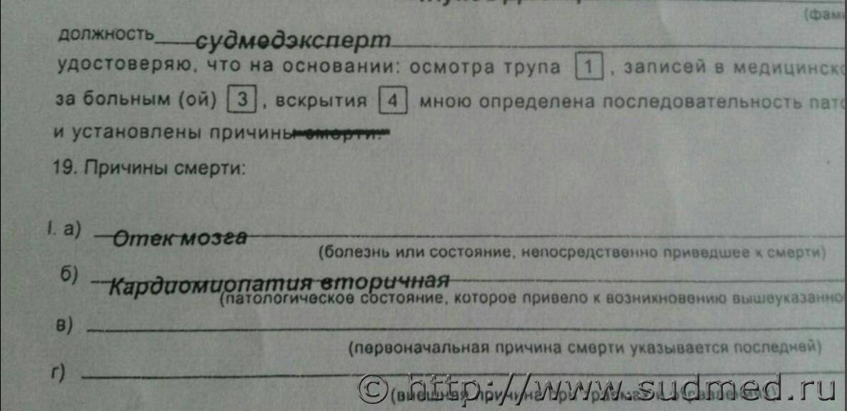 Это почему? Разве УП не может осложниться церебральным кровоизлиянием? Взамен окончательного. Если это имеется в виду. Так первое "окончательное" в ЗАГСе не зарегистрировано, видимо - вместе с трупом поехало на СМЭ, а там "сурприз". Чтобы дать окончательное взамен окончательного, нужно будет отправить родственников регистрировать смерть с диагнозом "ИБС"? Или отменять его? А с современными  |