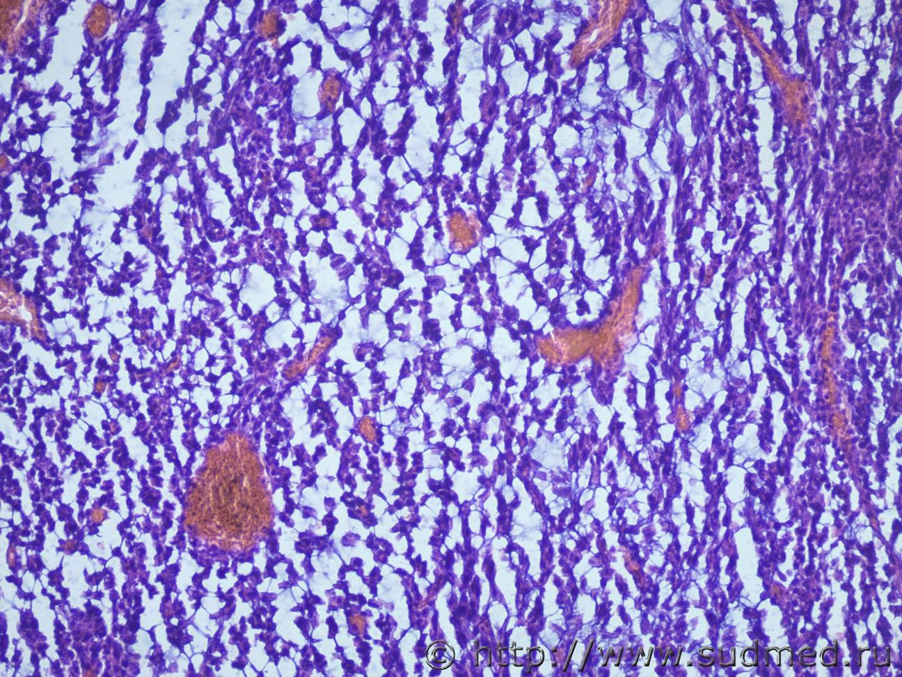 Эмболизация в сосудах имеет место. Клетки с баллоновидно-пузыревидной оптической цитоплазмой и нежноволокнистой безядерной стромой. Но не наблюдается сецернирующих призматических эпителии. Было бы влажный материал не лишнее было бы покрасить на Судан-3. Надеюсь о чем можно думать, ясно.