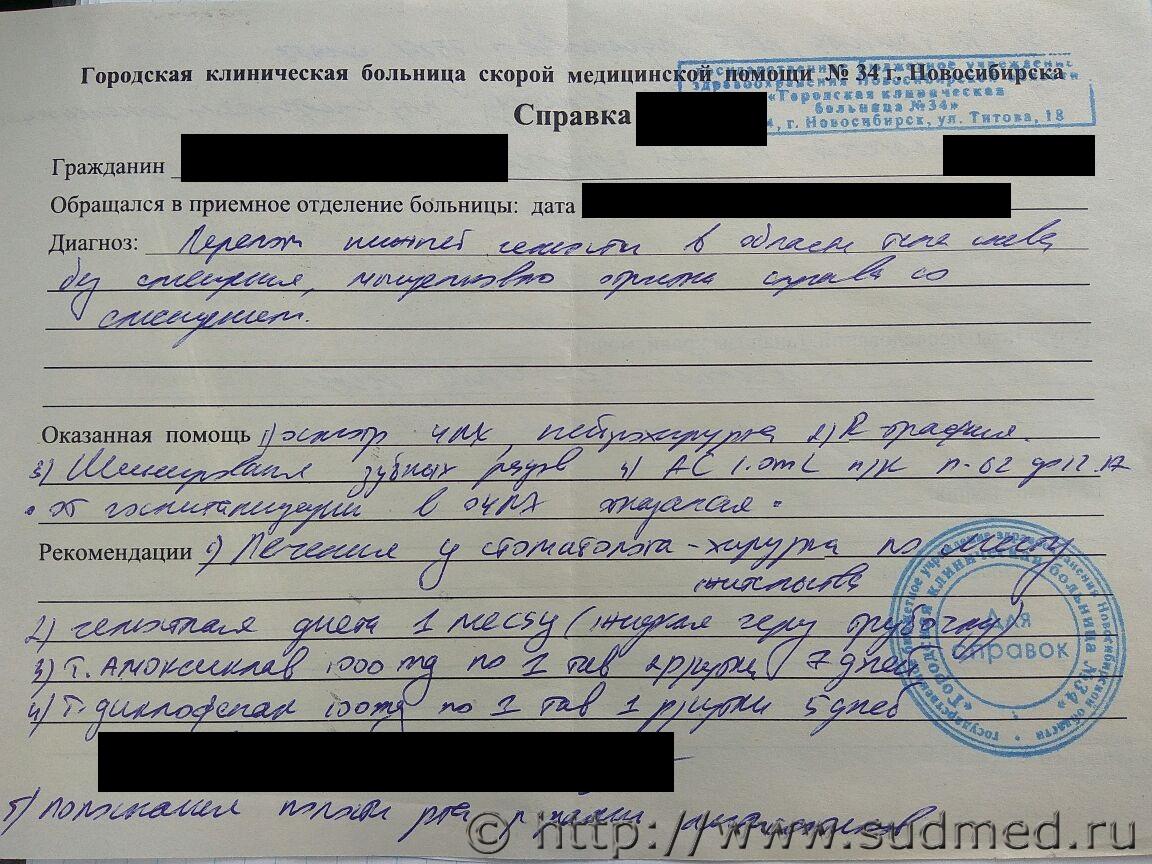Помогите определить тяжесть вреда, Справка о переломе челюсти |