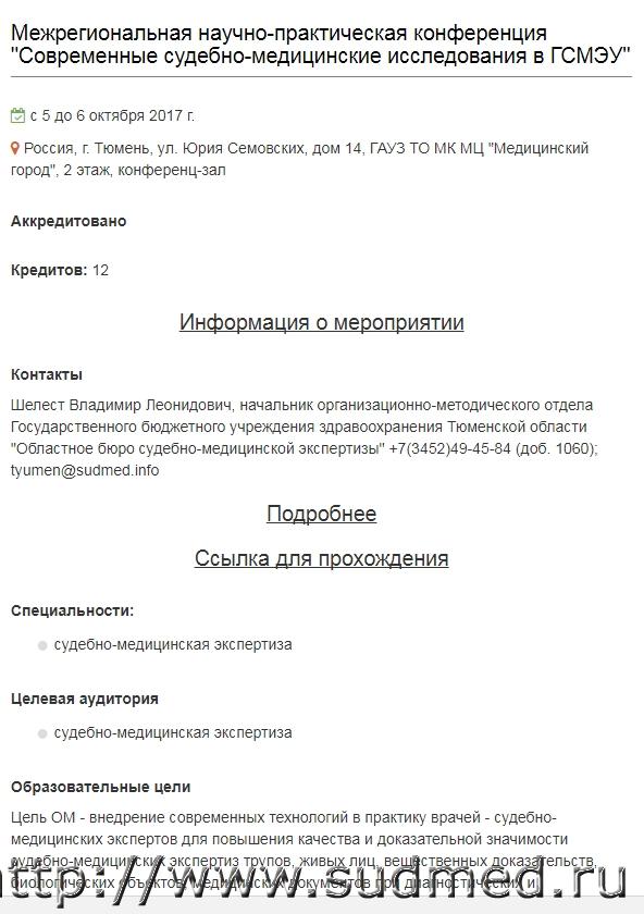 В соответствии с планом проведения образовательных мероприятий Некоммерческого партнерства «Приволжско-Уральская Ассоциация судебно-медицинских экспертов» (НП «ПУАСМЭ») на 2017 год государственное бюджетное учреждение здравоохранения Тюменской области «Областное бюро судебно-медицинской экспертизы» совместно с НП «ПУАСМЭ» организуют 05-06.10.2017 года в г. Тюмени Межрегиональную научно-практическую конференцию «Современные судебно-медицинские исследования в ГСМЭУ» и заседание XXVI сессии НП «ПУАСМЭ», приуроченные к 65-летнему юбилею образования Бюро судебно-медицинской экспертизы Тюменской области.