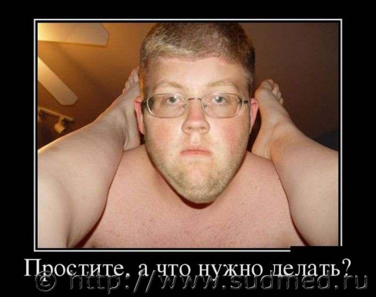 У тебя слишком мало мотивации. Ты высовываешь свой язык слишком часто и постоянно машешь хвостом. Сделай что-нибудь! Едет танк по лесу. Вдруг ломается гусеница. Танкисты вылезают, думают, что делать. Ясное дело-чинить. Чинили целый день, устали. Народ(Н) прилег у танка, отдыхает. Вдруг появляется прекрасная фея(Ф): Ф:-Ну что, ребятушки, за&бались? Н(устало):-Да,за&бались... Ф:- Бедненькие мои... А хотите по&баться по-настоящему? Н(оживленно):-Хотим!!! И тут у танка отвалилась башня... С котэ играют настоящие мужчины. Трус не играет с котэ. Философский вопрос. — Почему так притягивает обнаженная женская натура? — Есть в ней одно место, где одновременно присутствуют наше прошлое, настоящее и будущее |