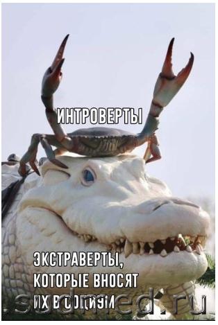 - Да отдыхать в Италию ездила. - С вами хоть не встречайся: вечно настроение испортите! Успех - это получать то, что ты хочешь. А счастье - хотеть то, что ты получаешь. По статистике в Питере всего около 30 ясных дней а году. А понятных и того меньше! Сделала впервые эпиляцию. После нее выяснилось, что у меня очень кривые ноги. Что посоветуете? Люблю голодного кота - он такой общительный! Психологический тест: как отличить интроверта от экстраверта? Очень просто! После крепкой дозы алкоголя интроверт говорит гадости о себе, а экстраверт - о других. |