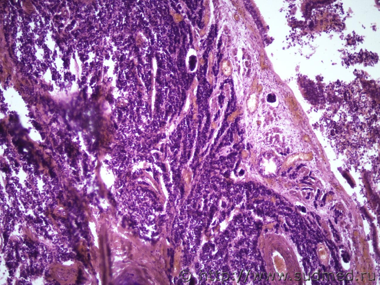 Ув. коллеги и снова здравствуйте. Как всегда опухоль. Макро- опухоль поджелудочной железы с прорастанием в окружающую клетчатку с метастазами в перибронхиальные, перипортальные ЛУ, в прикорневые отделы легких, в стенку желчного пузыря, тонкого кишечника. Легкие Наиболее подходит нейроэндокринный рак |