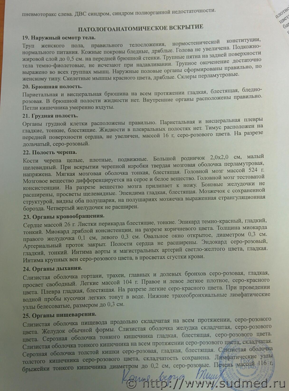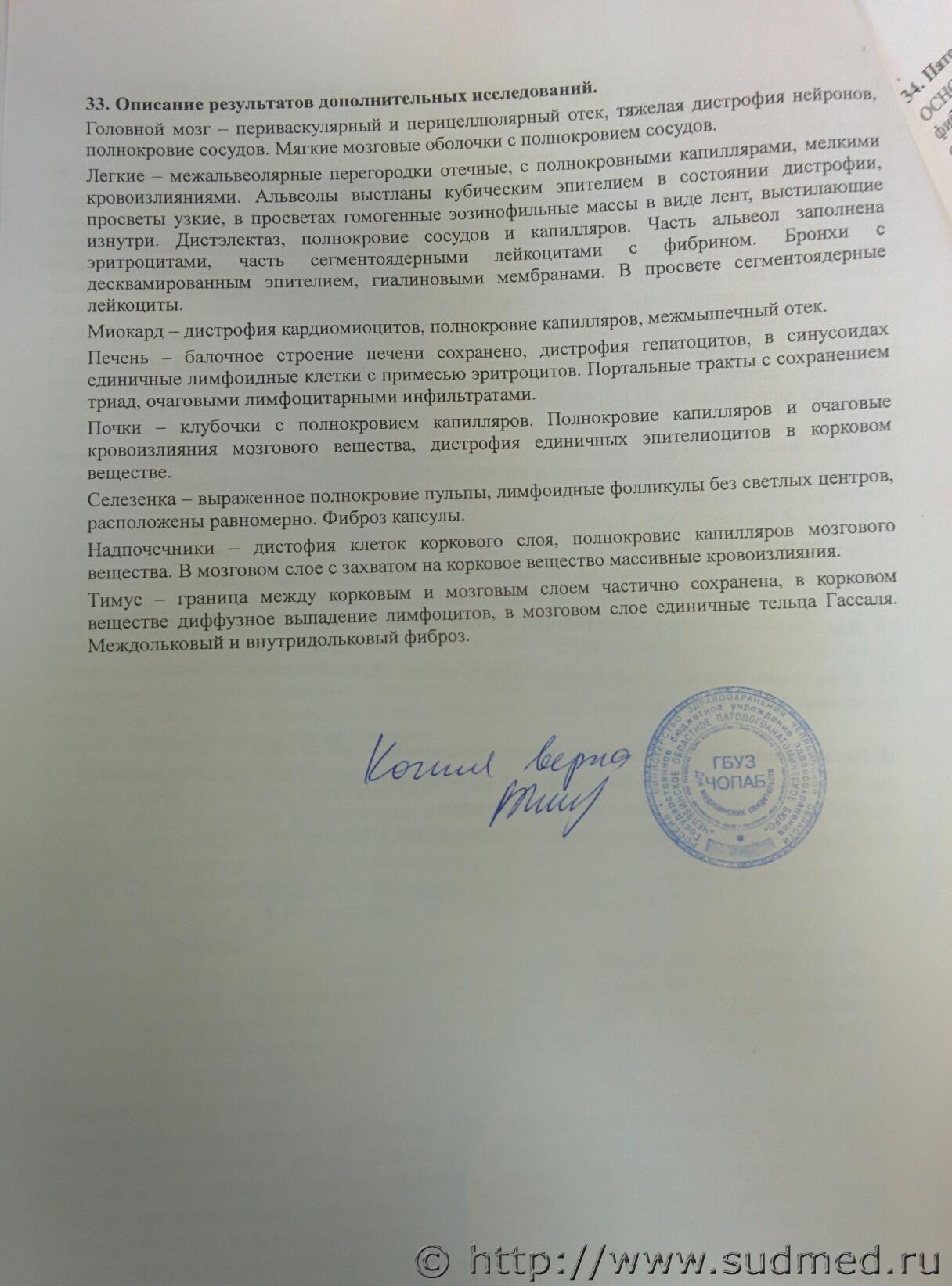 Не увидел результат бактериологического исследования лёгких и описание стекло-препаратов судебно-медицинским гистологом.