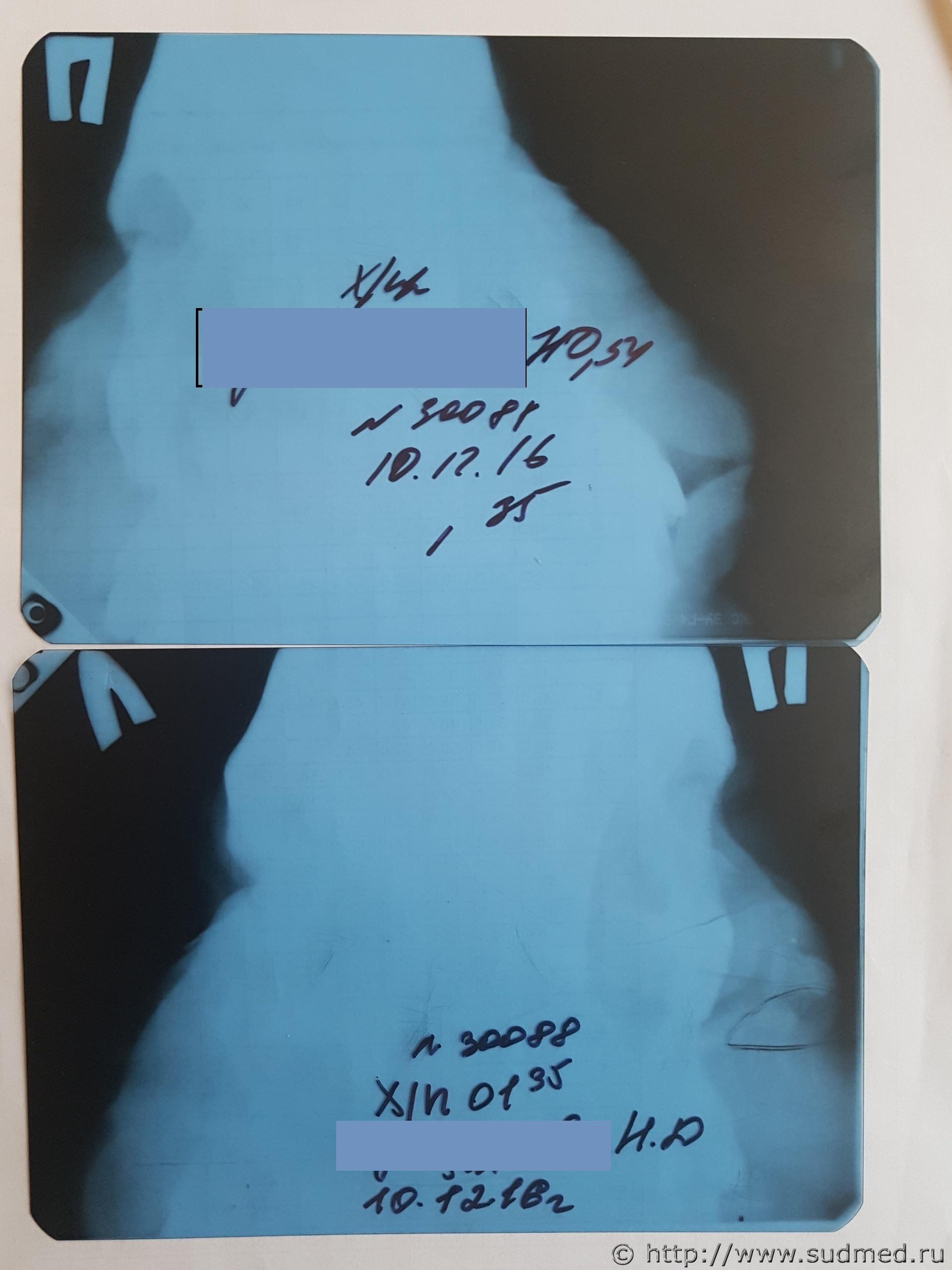 Здравствуйте уважаемые эксперты. В 2016 году я была дважды избита одним и тем же человеком. Во втором эпизоде он сломал мне ногу. Скорая помощь поставила диагноз разрыв связок. В неотложке сделали снимок и написали, что ушиб голени. С этой формулировкой муж привез в поликлинику по месту жительства,на приём к травматологу. ОН сказал появиться на приёме через 10 дней. Ногу фиксировать эластичным бинтом. Через 10 дней мне в поликлинике делали снимок, который показал перелом голени со смещением. У меня вопрос, какой вывод, какой диагноз можно поставить по такому снимку? В данное время все медицинские документы находятся у моего мужа, который имеет доверенность на ведение всех моих дел связанных с этими событиями. И еще вопрос -почему по доверенности, имея на руках постановление об экспертизе от дознавателя - у моего мужа отказались взять документы на экспертизу. Будут ли эксперты рассматривать мои фотографии и видео, как наглядные материалы, для установления наличия моих травм? Прошло 2 года, у меня на лице осталась асимметрия, травмированная часть лица выглядит опухшей и малоподвижна.