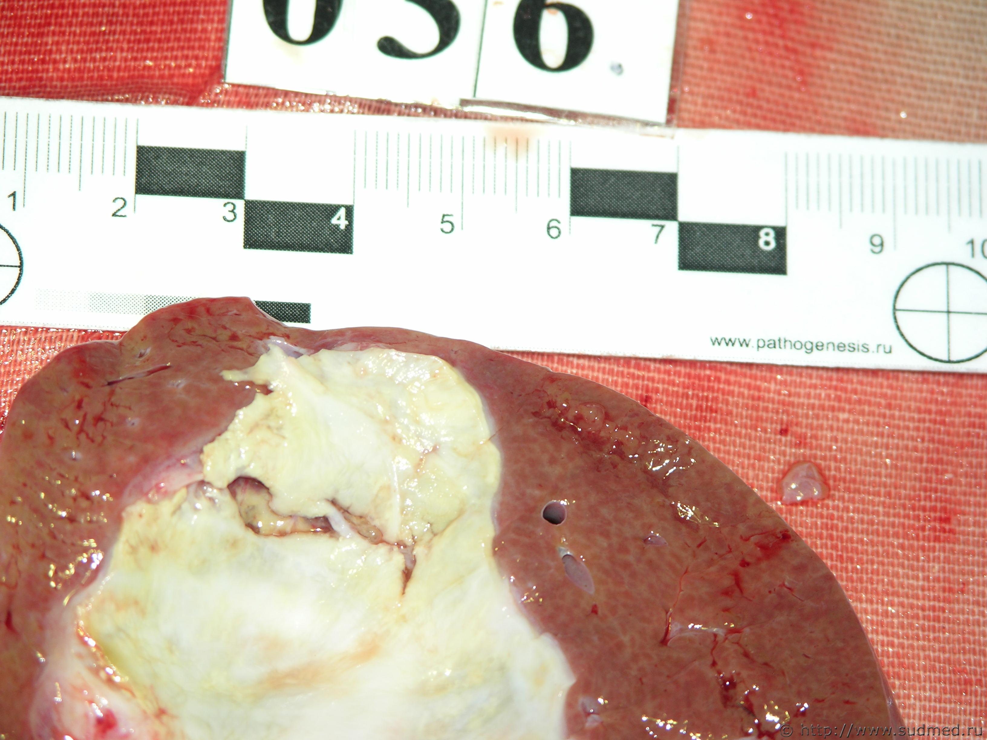 Хочу поделится интересным на мой взляд случаем... Ребёнок 9 лет в течение 5 лет наблюдался с диагнозом гидатидозный эхинококкоз печени. В день Х со слов родителей мальчик играл днём на улице... по неподтверждённым данным его толкнули или стукнули... он сразу схватился за живот, присел, заплакал... но через короткое время встал и пошёл играть дальше... минут через 10 стало плохо, упал, потерял сознание, изо рта пена... родители принесли его домой... умер до приезда бригады СМП... На вскрытии каких-либо повреждений в области груди и живота не обнаружено... 3 кровоподтёка на голенях... кожу на груди и животе широко отсепаровал - чисто... обнаружено разволокнение стенки кисты и разрыв герминальной оболочки (пузырь был спавшийся и плавал в жидкости, а она должна быть внутри него), морфологическая и гистологическая картина шока - выраженный отек мягкой мозговой оболочки и головного мозга, неравномерно выраженный отек дыхательных путей, спазм многих бронхов, дистелектазы, мелкоочаговый альвеолярный и интерстициальный отек лёгких с участками острой альвеолярной эмфиземы, признаки спазма мелких коронарных артерий с дистрофией, волнообразной деформацией и фрагментацией отдельных кардиомиоцитов, признаки «шоковой почки» (полнокровие юкстамедуллярной зоны и пирамид почек, слабо выраженный перитубулярный отек), гемоциркуляторные и гемокоагуляционные нарушения во всех органах (сладжи, эритростазы, внутрисосудистый гемолиз)... Причина смерти - синдром токсического шока в результате нетравматического разрыва стенки эхинококковой кисты и поступления токсического содержимого в кровь... |