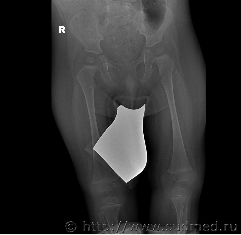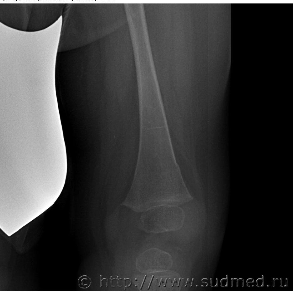 ... снимки выполнены в тот же день. Рентгенолог изменений структуры кости на снимке не отмечает... ...две консультации рентгенологов указывают на перелом. Думаю нужна консультация снимков детским травматологом-ортопедом с привлечением рентгенолога. Противоречивые сведения. Если разные рентгенологи видят разное, то вы правы - нужна ещё консультация. При обращении в травмпункт нижней трети правого бедра и коленного сустава - отек мягких тканей, болезненность при пальпации (ребенок плачет)… " A разве у нас речь не шла о рентген-снимке левого бедра? Впрочем, в нижней трети правого бедра край тени кости тоже не вполне идеально ровный. Кроме того, даже если допустить, что сил у массажистки предостаточно для причинения вколоченного перелома бедра, то, как я предполагал бы, он должен сопровождаться более грубыми повреждениями мягких тканей. |