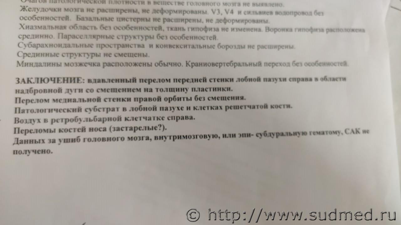 Заключение врача:Перелом медиальной стенки правой орбиты без смещения, вдавленный перелом передней стенки лобной пазухи справа в области надбровной дуги со смещением на толщину пластины, патологический субстрат в лобной пазухе и клетках решетчатой кости, воздух в ретробульбарной клетчатке справа. Я потерпевший и хотелось бы получить консультацию до прохождения комиссии. Заранее благодарю за помощь. Эскизы прикрепленных изображений |
