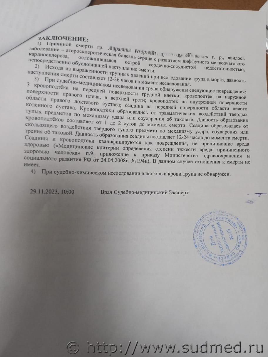 Причина смерти, Помогите понять, в чём причина смерти мужа |