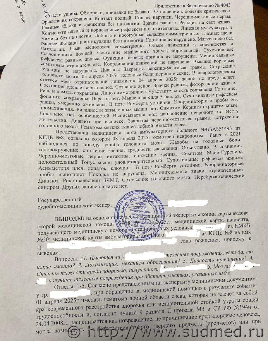 ... с момента травмы в 2021 году ребенок регулярно наблюдается у невролога и офтальмолога и никогда не было записей о нистагме или симптоме Манна-Гуревича, отмечалась устойчивость в позе Ромберга, уверенное выполнение координаторных проб. Если нет сотрясения, то с чем может быть связано появление этих симптомов? Если вы настолько проштудировали инет на предмет неврологической симптоматики, то должны знать, что симптом Манна-Гуревича проявляется не только при СГМ, но и при нарушении работы вертебро-базилярной системы, что может быть в том числе не только ранее перенесенной ЧМТ, но может носить врожденный характер, демонстрационный (диагностируемый) характер которой , в случае декомпенсации в моменте, может проявляется периодически, а потом пройти навсегда (конечно не при хронически получаемых ЧМТ). Теперь о том, почему раньше не находилось... А что, кто-то тщательно искал? Вы что, не понимаете почему некоторые симптомы, которые должны оставаться чуть ли не прижизненно, не отражаются в меддокументах? Да потому что нельзя бесконечно слушать жалобы ребенка, который уже просто привыкает косить (головная боль - субъективна, сказать можно что угодно)... закрывать лечение надо?, симптомы исчезают... Тут уже речь не о доказательной медицине, а о российских реалях... Эксперт не должен погружаться во всё это, он должен стремиться быть над этим и не сопереживать кому-то, потерпевшим, следователям, прокурорским или еще там кому.... |