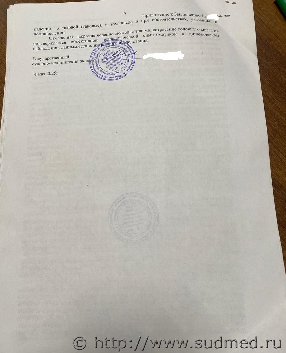 Цитата Есть ли какие то нарушения с точки зрения методики или оформления заключения? Формально - нет (какие-то надуманные придирки можно указать, но это будет, как мне представляется, мелочно и недостойно). Проблема в трактовке медицинских данных. Разумнее ссылаться на клиническую сложность случая: легкая травма головного мозга (его сотрясение) у ребенка (с характерной для детского возраста быстрой положительной динамикой) при наличии объективных признаков травмы покровных тканей головы (гематома) и ушиба головного мозга в анамнезе. Для достоверной судебно-медицинской диагностики этой травмы целесообразно привлечение компетентного эксперта - детского невролога, исследование всей медицинской документации со сведениями о предъявляемой травме, о состоянии здоровья до и после неё, осмотр пострадавшего членами экспертной комиссии. |