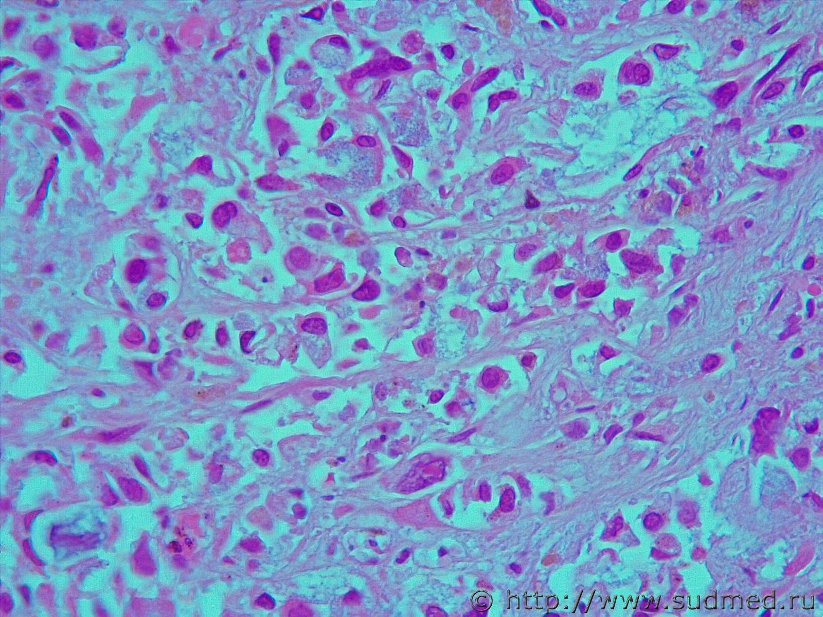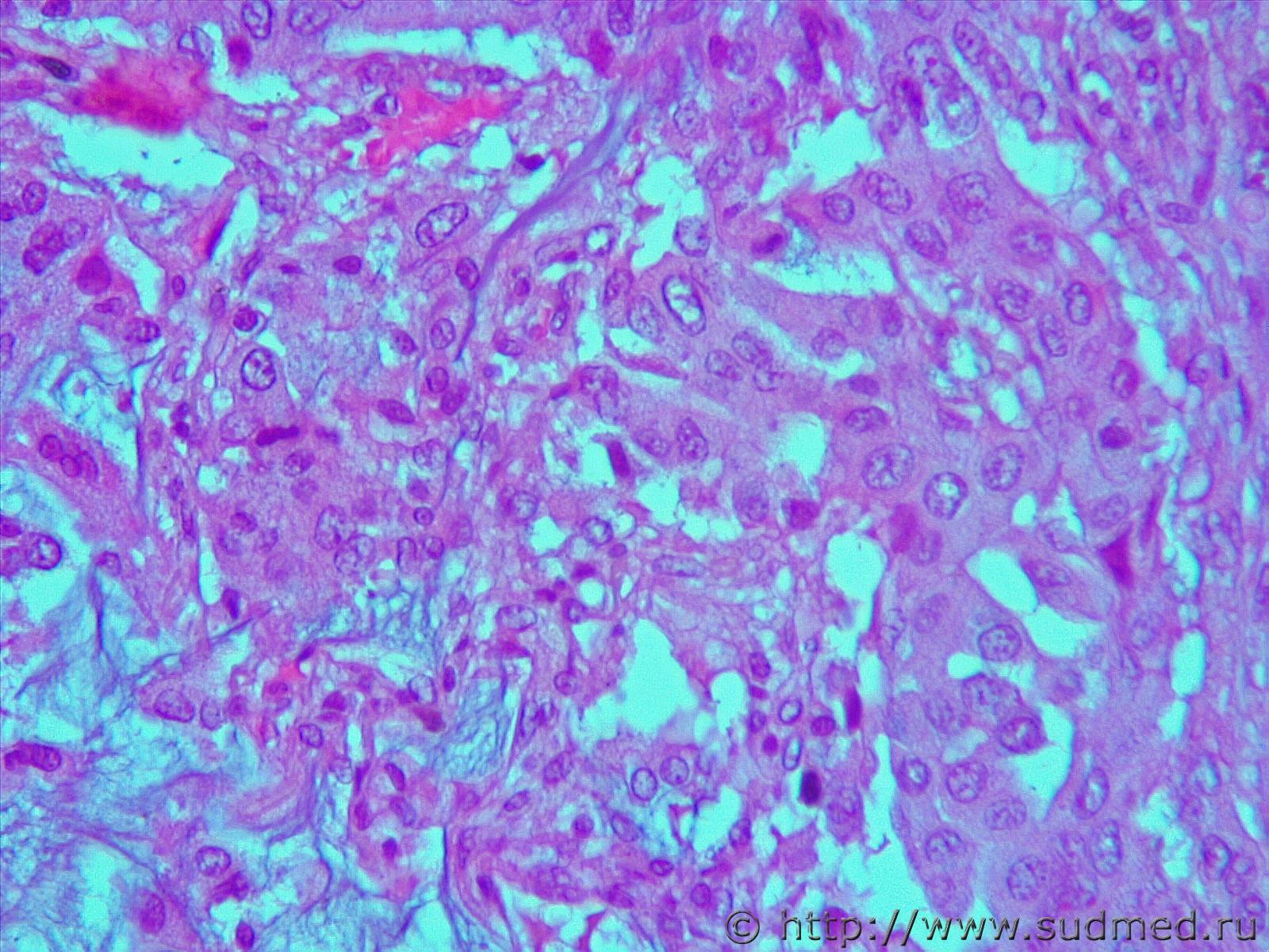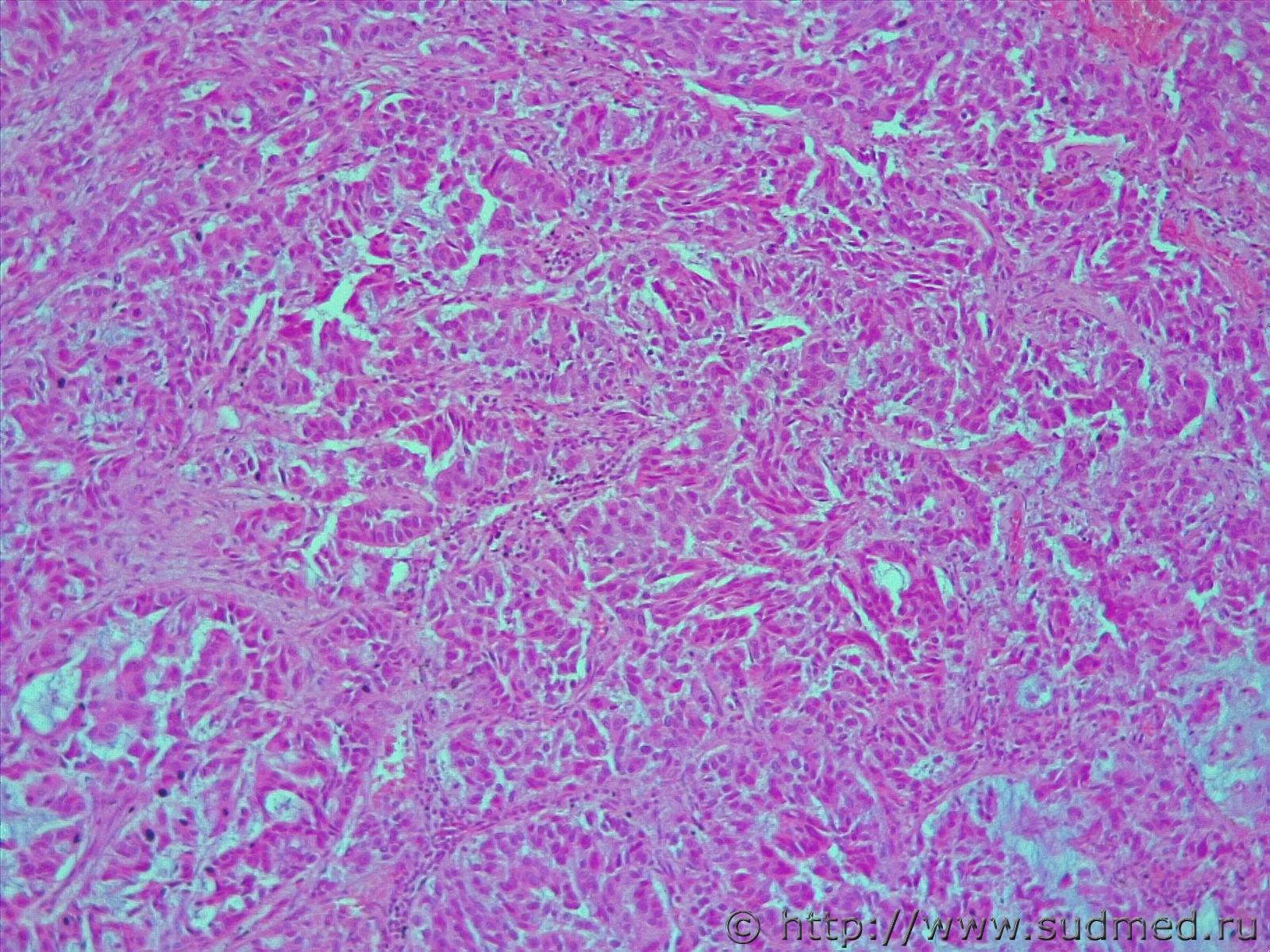 Фото не увеличиваются, но можно предположить, что это аденокарцинома.