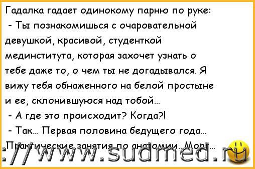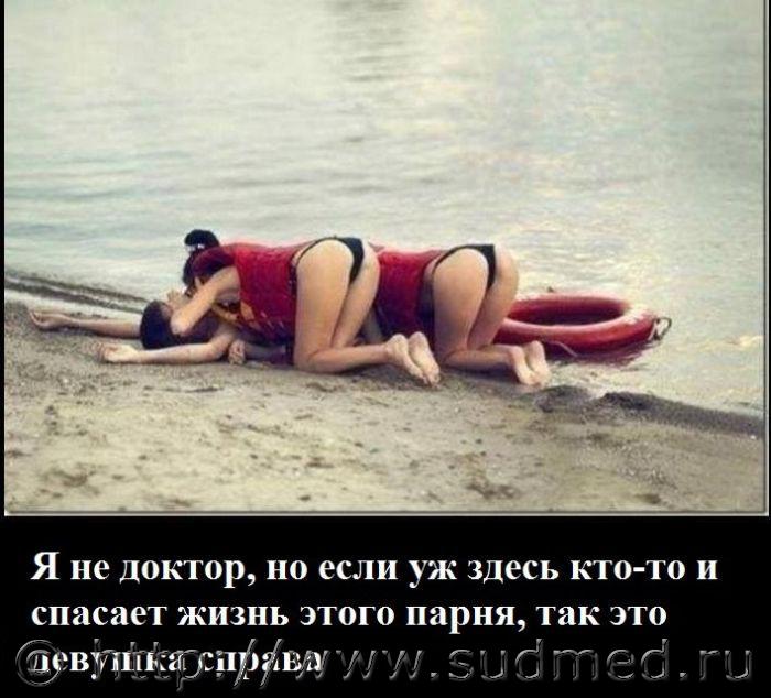 Сидят два парня на берегу реки с удочками, ловят рыбу, недалеко от них по воде рассекает девушка на водных лыжах. Вдруг веревка обрывается, девушка тонет. Один из парней ловко сбрасывает одежду и ныряет за ней в реку. Вытаскивает ее на берег и начинает делать искусственное дыхание рот в рот, раз делает...два...три..ничего не выходит...Парень уже в исступлении поворачивается к своему другу: -Господи, да что-ж у нее изо рта то так воняет ?! На что второй парень ему отвечает: -Да я вот тоже смотрю, та вроде в купальнике была, а эта в свитере и на коньках... |