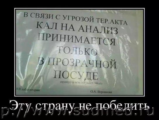 - Чтобы вытащить гвоздь из вашей головы, вам придется заплатить 10000 рублей. - Но у меня же полис ОМС! - По полису можем загнуть, чтобы не мешал. |