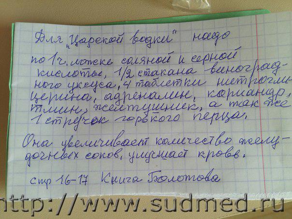 Здравствуйте! Рецепт сохраните и бабушку запомните. Когда бабуля на себе опробует, химикам легче будет, да и у Вас готовый диагноз... К сожалению я не СМЭ, я провизор, работаю в аптеке и такие вот бабули/дедули да и чего там скрывать.... молодежь идут с рецептиками (бывали и хуже) от которых хватаешься за голову с вопросом "Как вы еще живы после такого?". Радует еще то, что она не найдет (просто так) как минимум половины ингредиентов. |