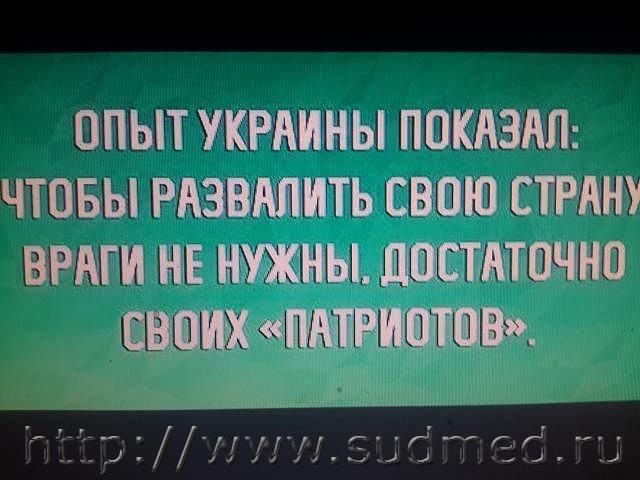 Яйценюх спрашивает у Трупчинова: - Что такое "реально" и что такое "гипотетически"? -Сеня, как бы тебе обьяснить... давай лучше разберем на примере... Вот возьми, сходи до Юли Тимошонки и спроси у неё: переспала бы она с Обамой за Крым? Яйценюх возвращается: - Говорит, что переспала бы. - Вот. А теперь сходи и спроси у Фарион: переспала бы она с Обамой за возвращение Луганска с Донецком? Яйценюх вернувшись: - Она тоже переспала бы. - А теперь у Ляшко спроси, даст ли он Обаме за Белгородскую область? Возвращается: - Олег тоже согласен. - Вот видишь, Сеня, гипотетически у нас с тобою Украина до самого Дона, а в реальности - только две проститутки и пидор@с. Быстро переделан анекдот, под политическую обстановку |
