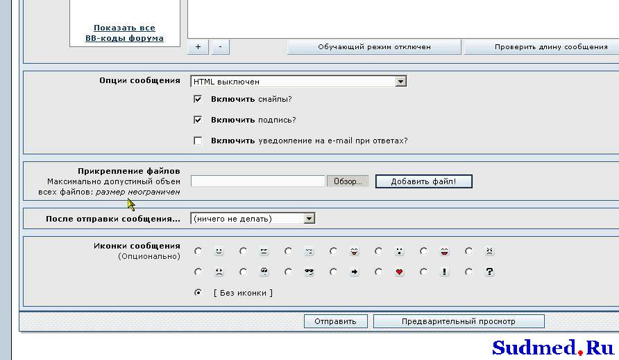 1. В той теме, где вы желаете оставить сообщение, нажимаете кнопку , либо в форме быстрого ответа ( ) нажимаете кнопку . В обоих случаях откроется расширенная форма ответа, внизу которой есть раздел "Прикрепление файлов" (см. ниже на фото - над желтым курсором)2. Нажимая на кнопку "Обзор...", выбираете нужный файл (в данном случае это будет изображение) и загружаете его в базу форума, нажимая на кнопку ![]() После того этого под кнопкой появятся название файла и две новые кнопки: Удалить! и Вставить в сообщение. 3. Расположите курсор в той части сообщения, куда хотите вставить изображение, и нажмите ![]() 4. Все, теперь можно отправлять сообщение в форум! P.S. Если тип и размер изображения правильные, но картинка никак не загружается, нужно обратить внимание на оставшийся "Максимальный допустимый объем всех файлов" - в форме ответа под заголовком "Прикрепление файлов". Лимиты на загрузку установлены достаточные, но если кто-то исчерпает, пишите мне - увеличу. P.P.S. Как уменьшить размер большого изображения? Скачиваем небольшую бесплатную для домашних пользователей утилиту и русский язык к ней, инсталлируем, запускаем. В программе можно по разному видоизменять и редактировать изображения, наша задача уменьшить размер изображения. Перейти в меню «Изображение -> Изменить размер изображения» В появившемся окне можно менять размер изображения как угодно. Можно ввести желаемый размер в пикселах, сантиметрах, процентах, можно выбрать один из предустановленных стандартных размеров, или просто нажать кнопку «Уменьшить вдвое». Теперь нужно сохранить файл в меню «Файл –> Сохранить как» и выбрать формат JPEG. Здесь же можно выбрать качество сжатия JPEG: чем выше цифра, тем лучше картинка, почти незаметна потеря качества от 80%, а при 100% потерь качества почти нет, но размер файла увеличивается. Для больших изображений, предназначенных для загрузки на сайт, нужно ставить галочку «Прогрессивный формат JPG». В этом случае изображение будет загружаться не сверху вниз, а сначала покажется размытый силуэт изображения, а затем по мере загрузки появится полная картинка. Рекомендую для форума выбирать разрешение 1280x768, 1024х768 или 800х600 в зависимости от необходимой детализации изображения. |