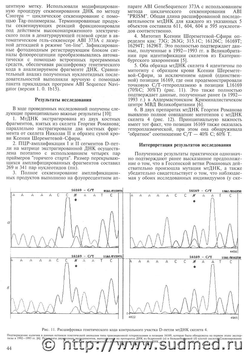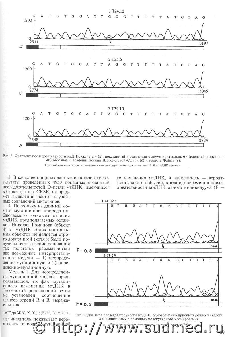 Кол-во скачиваний: 454Уважаемый Зубр! Спасибо за материал. Вопрос, собственно говоря, даже не в том, кого перезахоронили в 1998 году в Петропавловской крепости (возможно это и были члены царской семьи), а в том, что результаты ивановской экспертизы либо былы подтасованы в виду отсутствия пригодной для анализа ДНК-матрицы, либо были получены генетические профили чужеродной ДНК (возможно родственников), загрязнившей имеющийся костный материал (вот Вам одно из объяснений происхождения гетероплазмии у "царя"). Очень уж смущает длительная (десятки лет!) сохранность ДНК в кислой среде. |