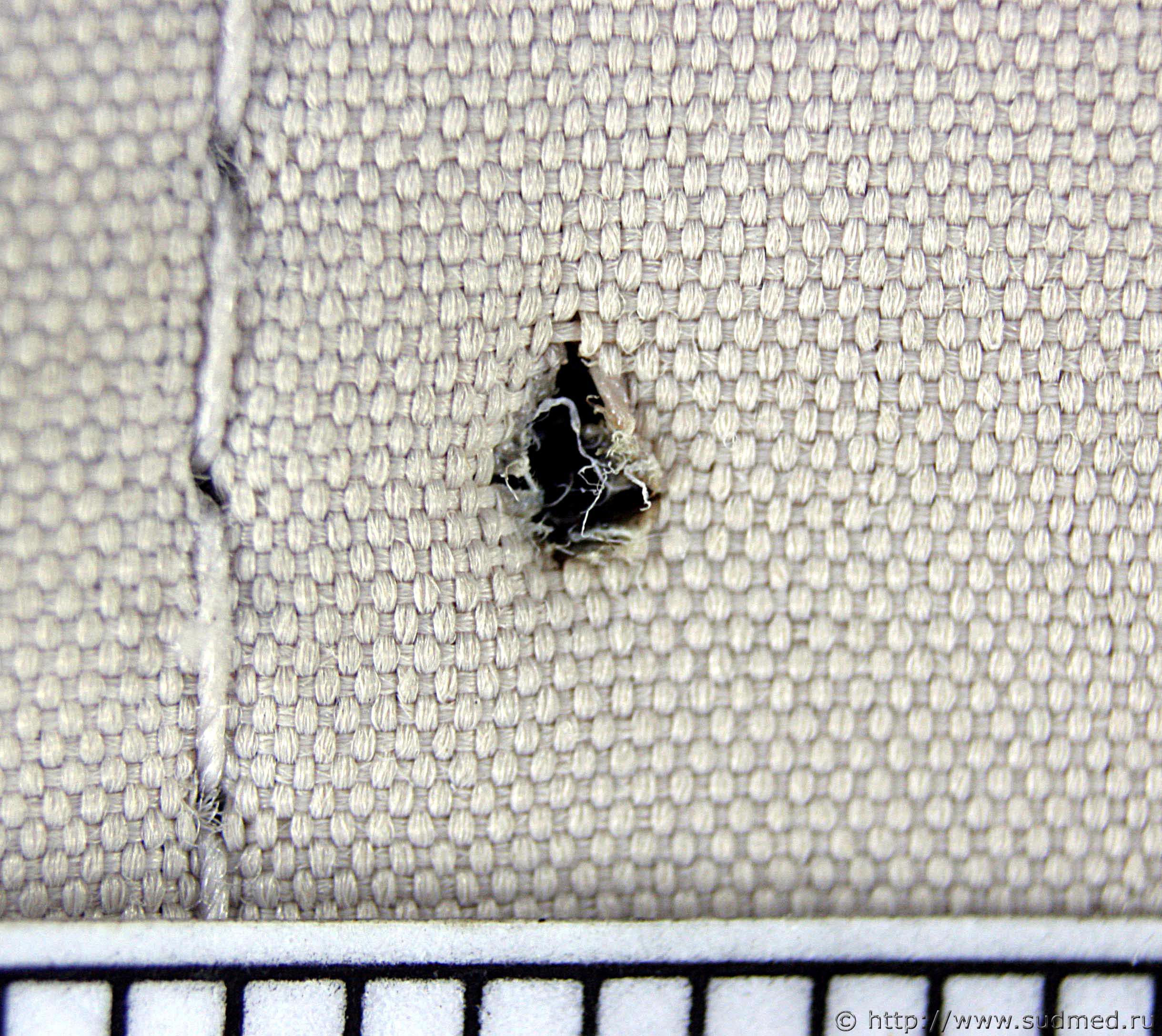 К сожалению, контактно-диффузионное исследование не дало результата, вся одежды сплошь была загрязнена следами металлов. Хотя в "чистом" эксперименте следы металла откладываются, а если повезет, то иногда удается четко сопоставить повреждения на одежде со следами отложения металла на контактограмме.