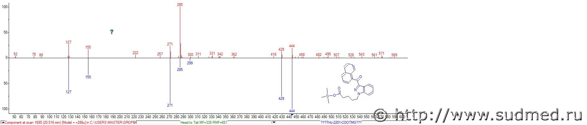 хроматограммка-то есть, только найти на ней что-то уникальное именно для ам-2201 я не могу, может у Вас получится. единственное отличие от картины, наблюдающейся для 018-го - наличие С5-карбокси метаболита, также пичок jwh-073 C4-OH