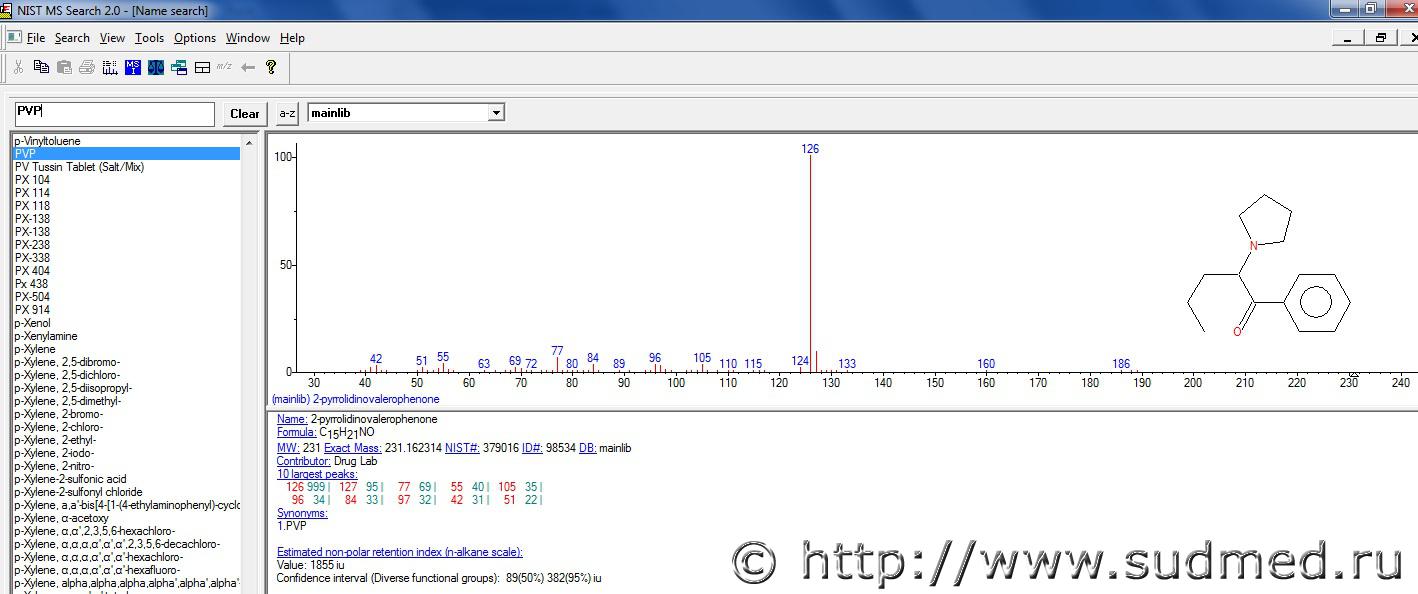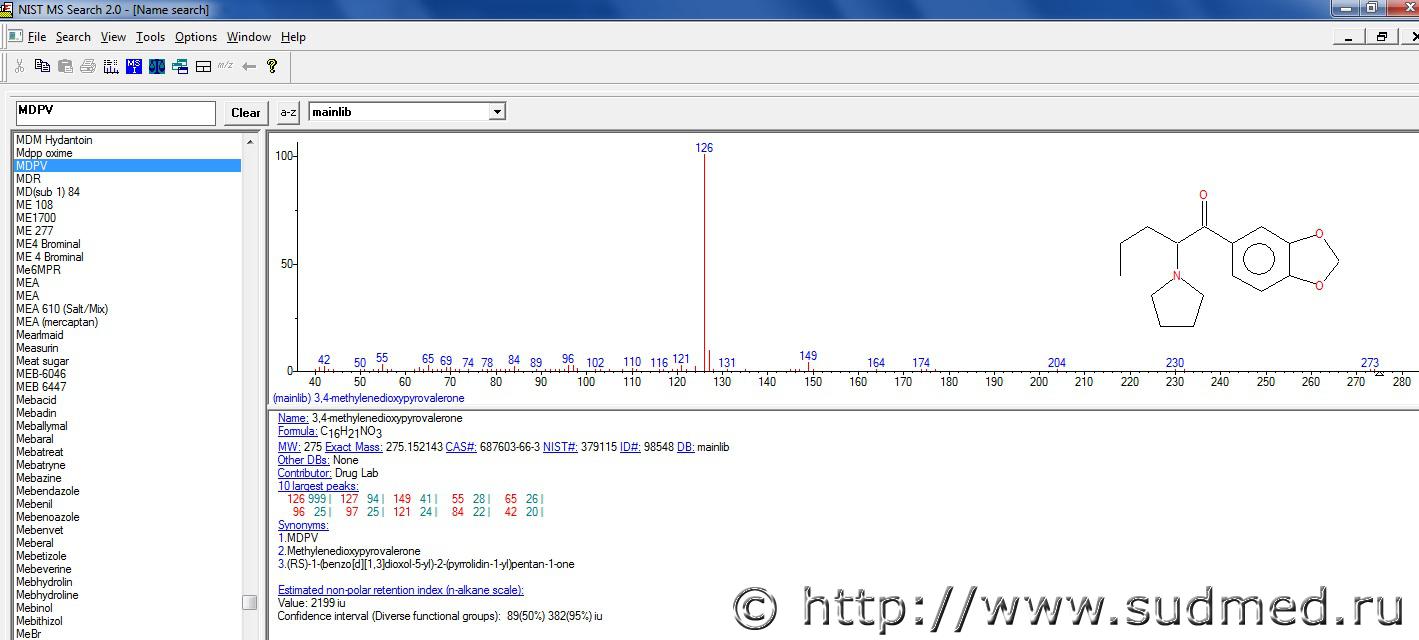По поводу высказанного выше "...Нет в NIST11 спектров PVP, MDPV..." не соглашусь, поскольку их есть в лицухе)))