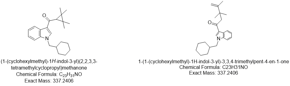 библиотеки АИПСИН пополнились спектрами психоактивного вещества TMCP-CHM ([1-(Циклогексилметил)индол-3-ил]- (2,2,3,3-тетраметилциклопропил)метанона), ставшего в последнее время довольно популярным в нелегальном обороте на территории России, в том числе в виде наборов- конструкторов для его кустарного синтеза. Прикрепленные файлы