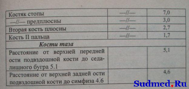 Спасибо всем, кто откликнулся! К сожалению доступа к ссылке у меня нет. У вот таблицы, уважаемый FILIN, очень кстати, можно будет закончить экспертизу с вполне конкретным выводом. В ней как раз есть данные по телам длинных трубчатых костей (без хрящевых частей). Большое спасибо, думаю, что мой вопрос можно считать исчерпанным. |